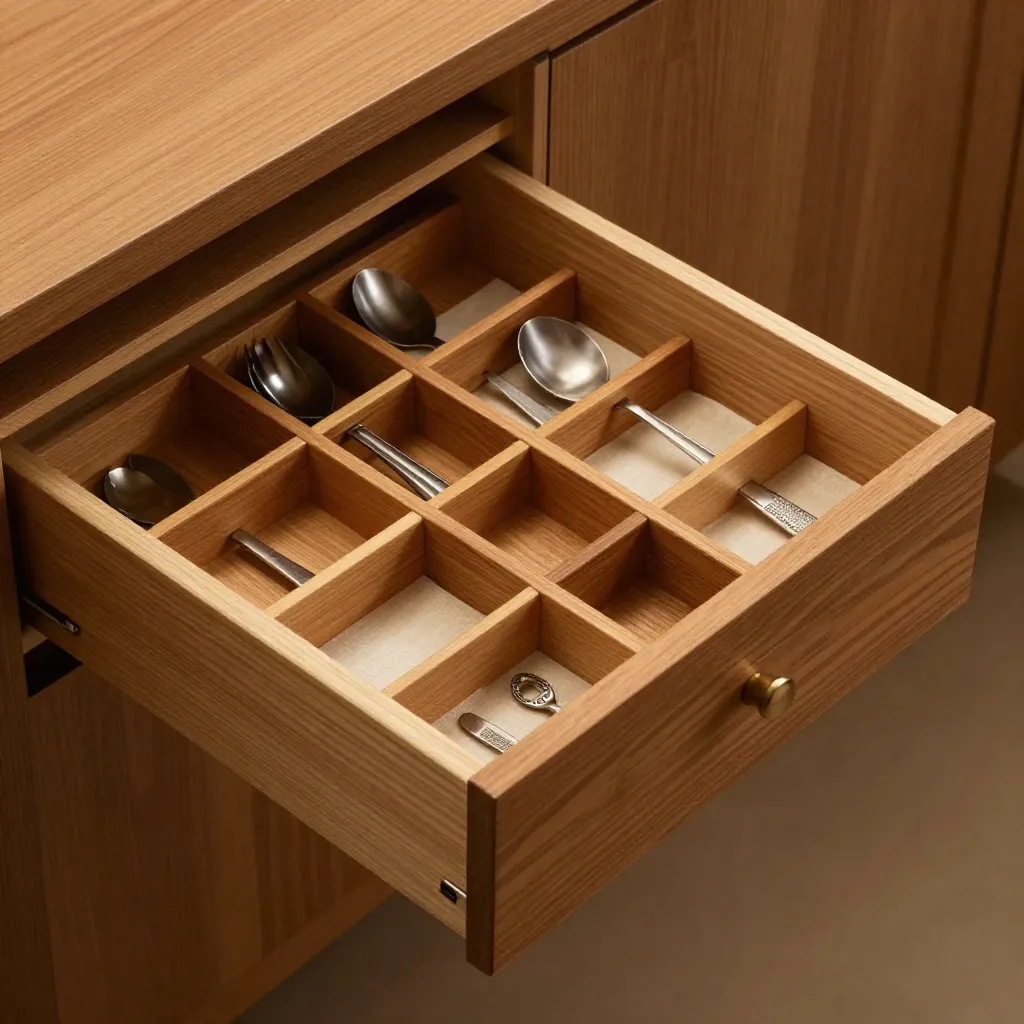 Keep your drawers perfectly organized with this comprehensive set of dividers and trays. Customizable compartments accommodate utensils, cutlery, and kitchen tools of all sizes.